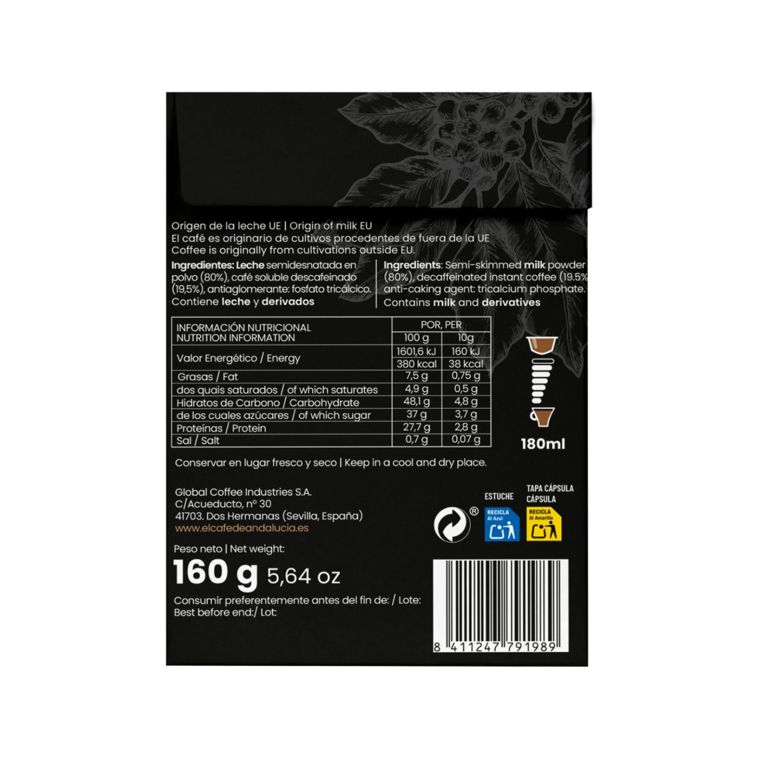 Cada envase contiene 16 cápsulas diseñadas para ofrecerte la misma cremosidad y sabor suave que amas en tu café con leche, pero sin cafeína. Perfecto para aquellos momentos en los que deseas disfrutar de una deliciosa taza de café sin preocuparte por el contenido de cafeína.