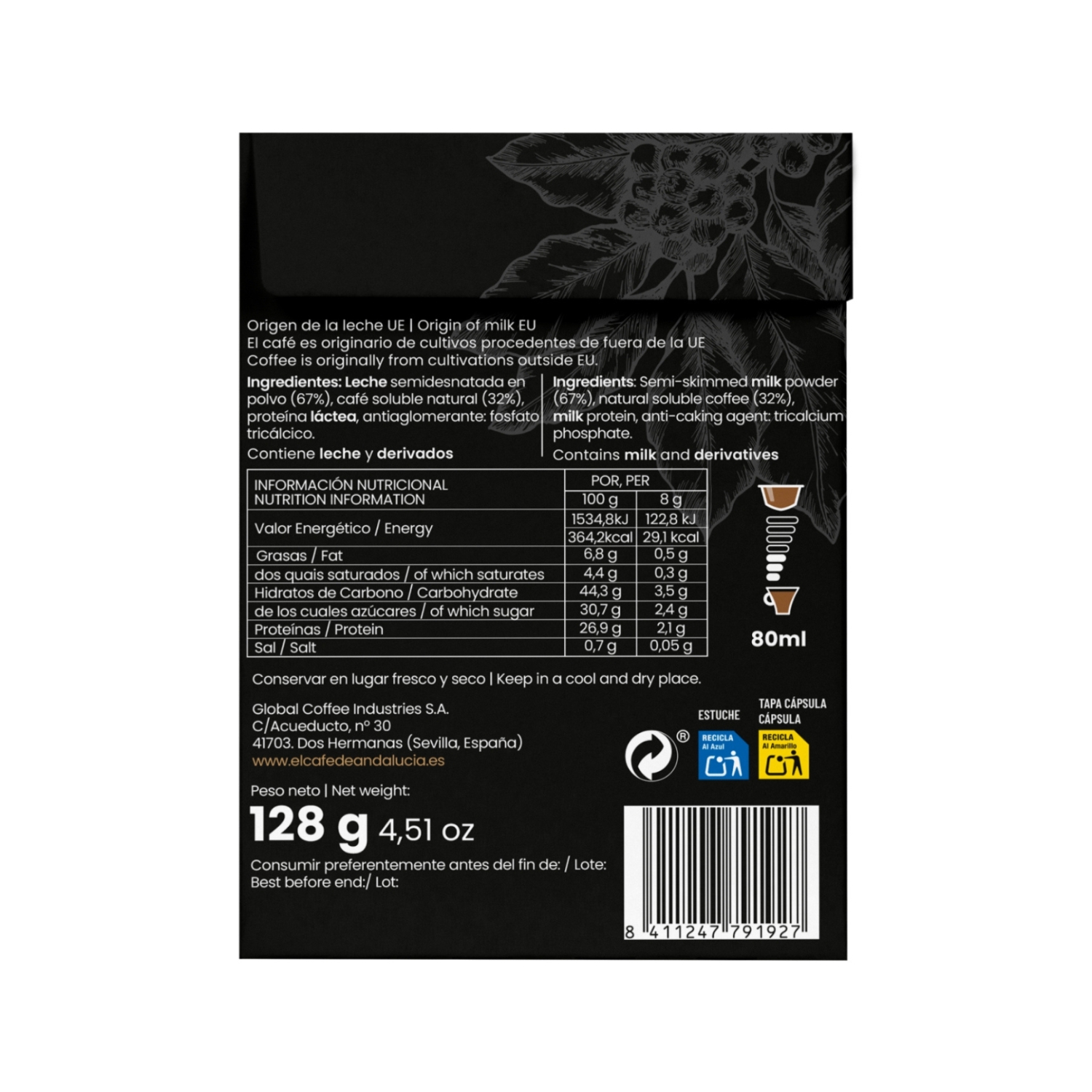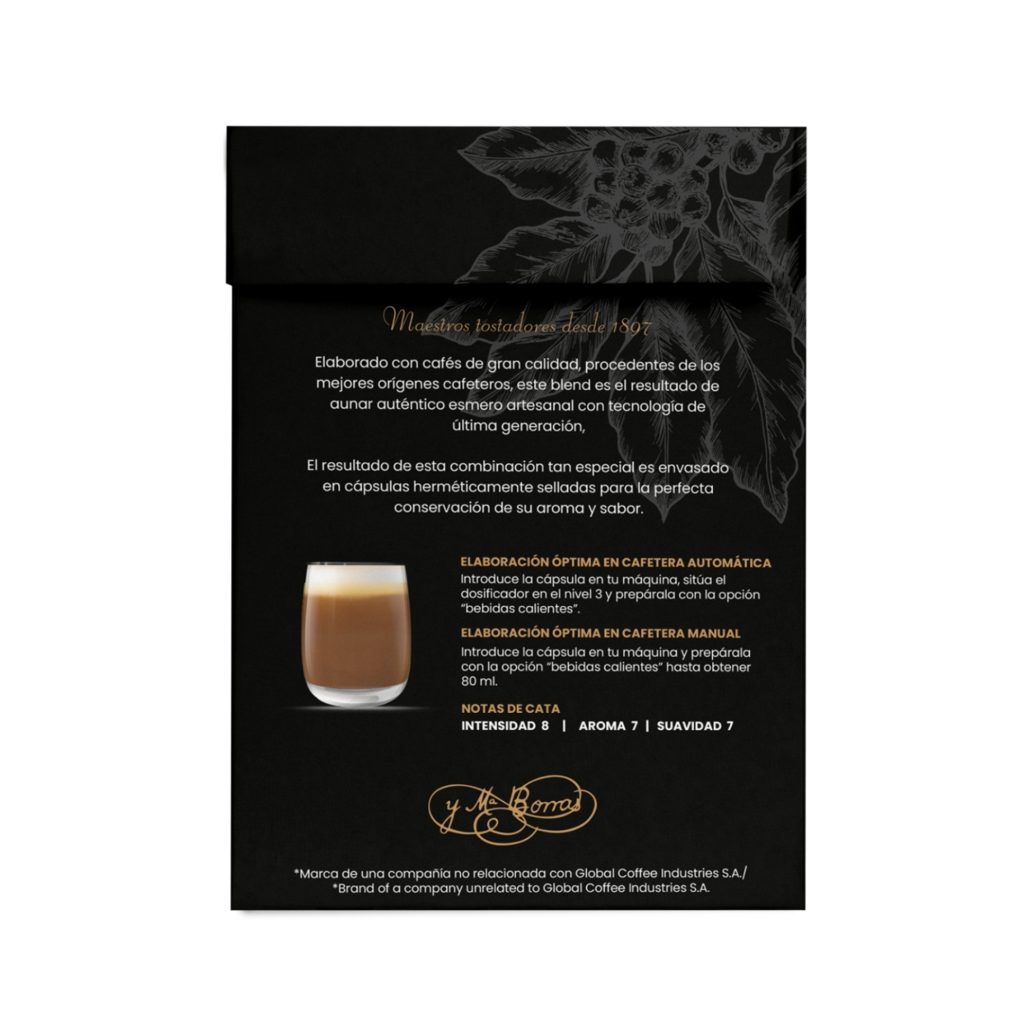Con 16 cápsulas en cada envase, nuestras cápsulas de café cortado son la combinación ideal de espresso y leche, perfectamente dosificados para brindarte una experiencia de sabor incomparable. Cada sorbo es una indulgencia suave y cremosa que te hará desear otro, y otro más.