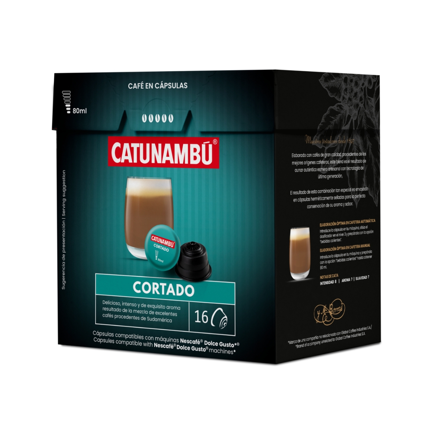Elaboradas con los mejores granos de café y una leche de alta calidad, nuestras cápsulas de café cortado Catunambú son compatibles con las cafeteras Dolce Gusto®, lo que te permite preparar fácilmente esta deliciosa bebida en la comodidad de tu hogar o la oficina.